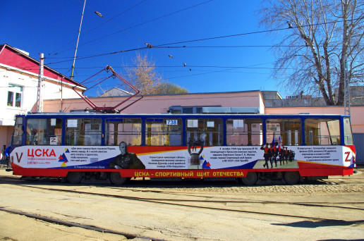 В уральской столице на маршрут вышел «армеец» - трамвай, брендированный к 100-летию Центрального спортивного клуба Армии. Старт первой поездке обновленного трамвая дали сотрудники спортивного центра г. Екатеринбург самарского филиала ЦСКА.