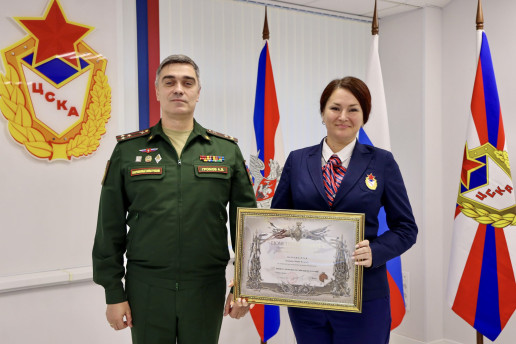 Также за достигнутые успехи в служебной деятельности, примерную трудовую дисциплину, добросовестное выполнение должностных обязанностей в честь празднования 70-й годовщины со дня образования Спортивного клуба Армии была награждена заместитель начальника отделения (финансово-экономического), заместитель главного бухгалтера Екатерина Береснева.