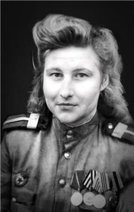 Участница Великой Отечественной войны. Участница боевых действий с 1942 по 1944 год. Вольнонаёмная. Радистка 13-го отдельного авиаполка на 2-м Белорусском и Прибалтийском фронтах. Награждена орденом Отечественной войны II степени и 11 медалями.