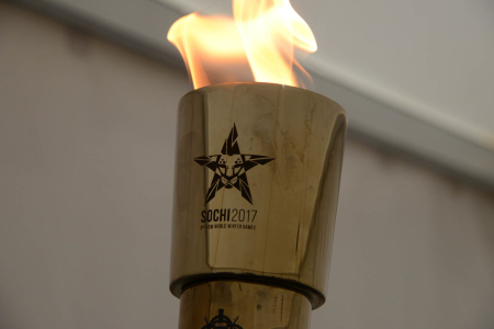 В завершении церемонии огонь был передан официальному послу Игр – Заслуженному мастеру спорта России, двукратной победительнице Олимпийских игр, заместителю начальника ЦСКА по работе с личным составом подполковнику Светлане Ишмуратовой, которая прилетела в Екатеринбург из Москвы специально для участия в мероприятии.