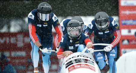 По сумме двух попыток российский экипаж показал время 1 минута 39,96 секунды. Вторым стал швейцарский экипаж Рико Петера (1:40,19; +0,23), третьим — латвийская четверка Оскарса Киберманиса (1:40,22; +0,26).