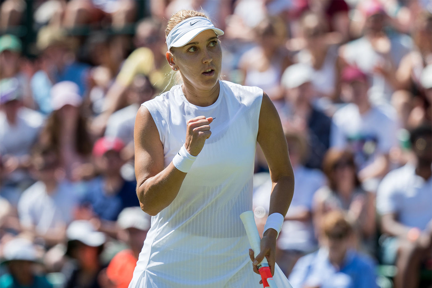 Бывшая первая ракетка мира Азаренко вернулась на корт в декабре 2016 года после рождения ребенка и сейчас занимает 638-ю строчку международного рейтинга WTA. Встреча с Весниной стала для нее четвертой после перерыва в карьере. В следующем раунде Азаренко встретится с 25-летней американкой Хизер Уотсон.