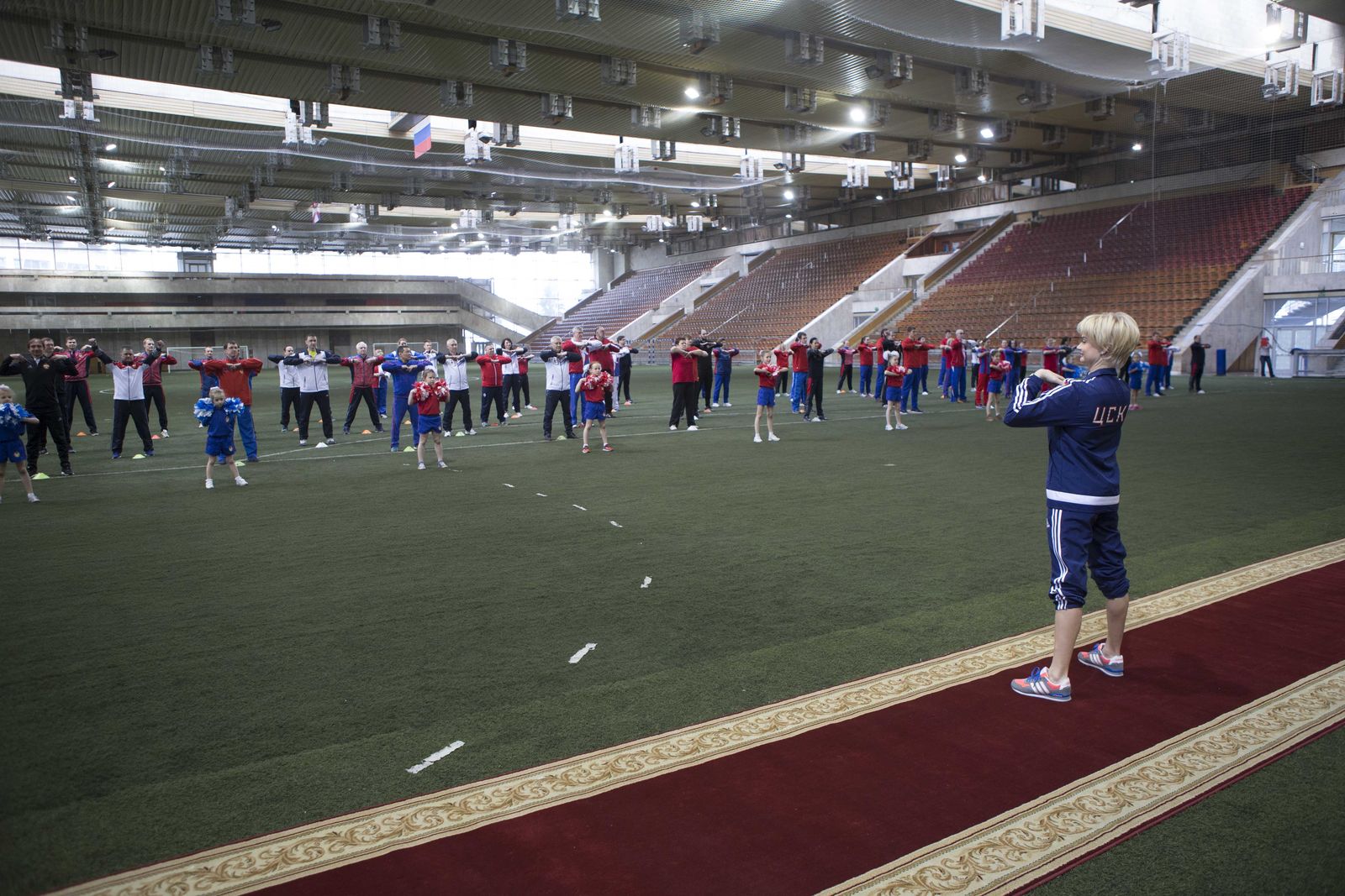 Форма одежды на зарядке - спортивный костюм ЦСКА.