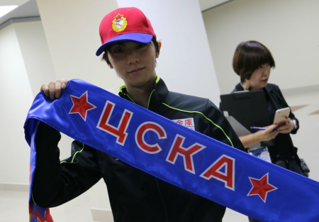 После пресс-конференции Ханю, прорвавшись сквозь кордон японских журналистов, было отправился в раздевалку, но, приметив атрибутику армейского клуба, остановился и пожелал удачи фигуристкам ЦСКА и лично Елене Радионовой.