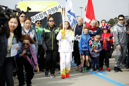 В ходе эстафеты по территории Южной Кореи 7500 факелоносцев пронесут огонь по девяти провинциям и восьми крупным городам прежде чем доставить его 9 февраля на Олимпийский стадион. Маршрут эстафеты составит 2018 км.