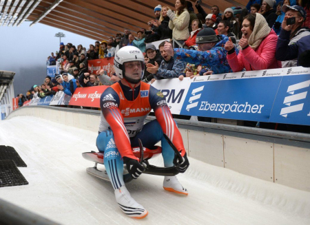 По сумме двух попыток армеец Семен Павличенко показал результат 1 минута 41,771 секунды. Второе место занял действующий чемпион мира австриец Вольфганг Киндл (1.41,827), третье — победитель ОИ-2014 немец Феликс Лох (1.41,841). Одноклубник Павличенко - обладатель Кубка мира 21-летний Роман Репилов занял 13-е место (1.42,188).