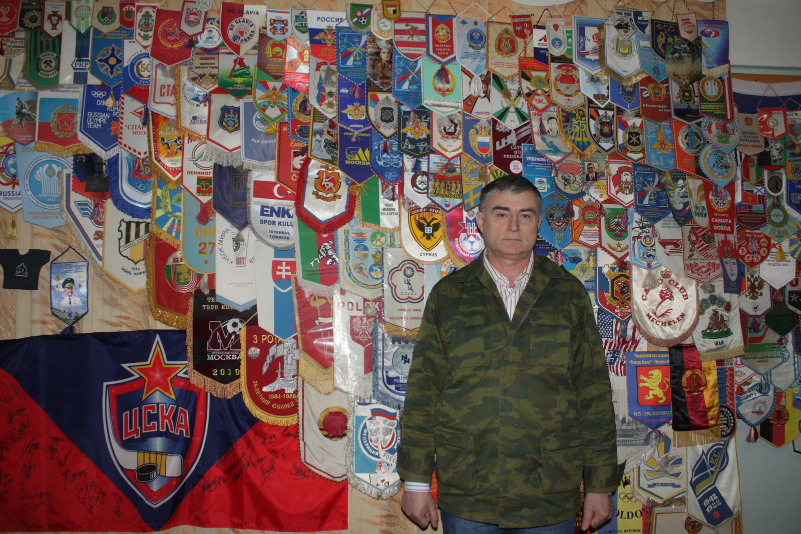 Есть у Александра Николаевича и своё особое хобби - он собирает коллекцию вымпелов, в том числе вымпелов ЦСКА, первый из которых он повесил на стену в 1995 году. За прошедшие годы коллекция разрослась и насчитывает сегодня несколько сотен экземпляров.