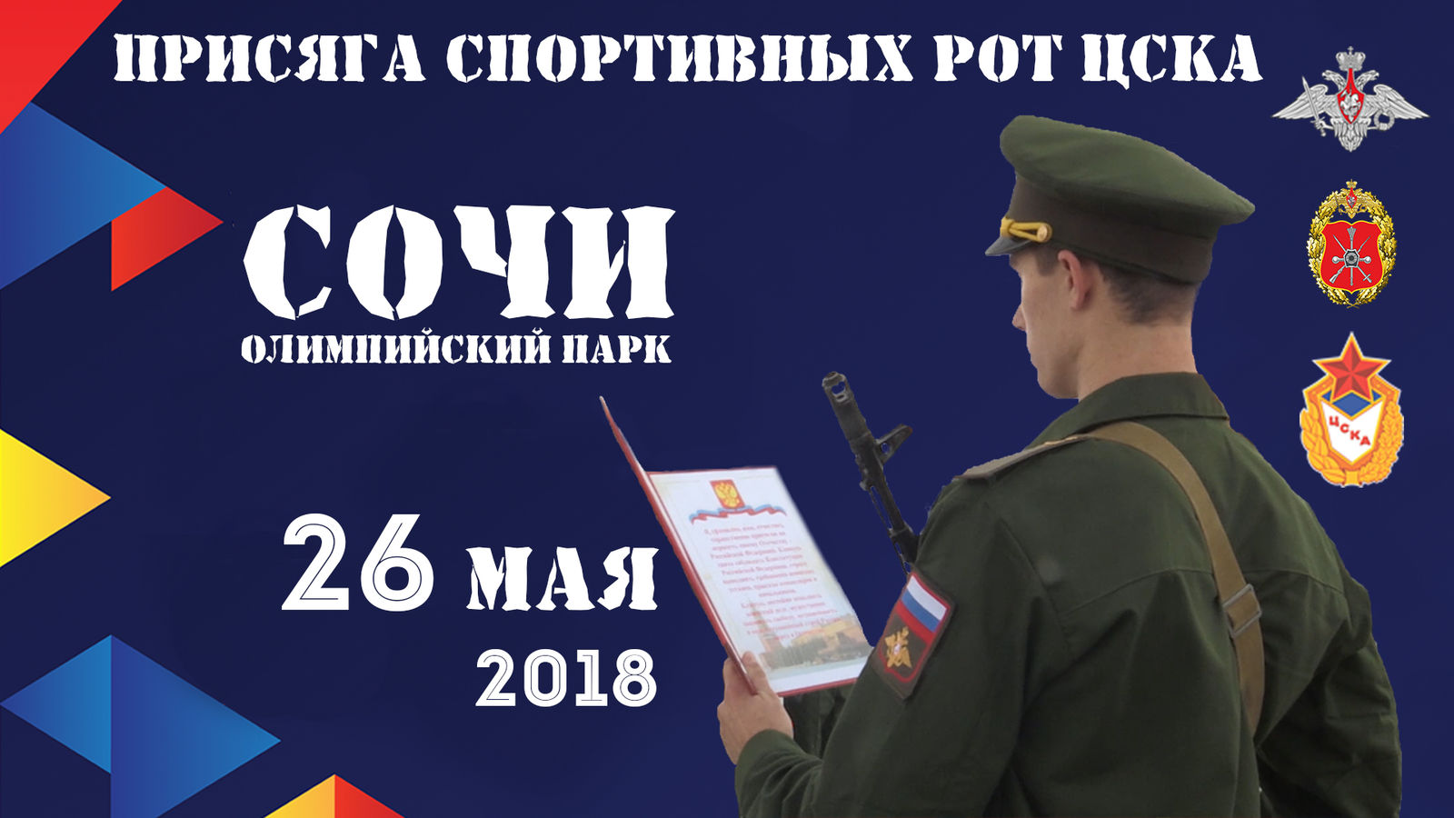Приглашаем представителей СМИ 26 мая 2016 года (сбор журналистов осуществляется до 09.30) на Медальную площадь Олимпийского парка города Сочи на Торжественную церемонию принятия Военной присяги новобранцами спортивных рот ЦСКА.