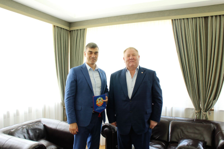 В торжественной обстановке Председатель Совета ветеранов спорта ЦСКА Владимир Шкалов вручил начальнику Центрального спортивного клуба Армии полковнику Артему Громову удостоверение члена Совета ветеранов, вымпел «Межрегиональной общественной организации Ветераны спорта ЦСКА» и почетный знак ветеранов спорта армейского Клуба.