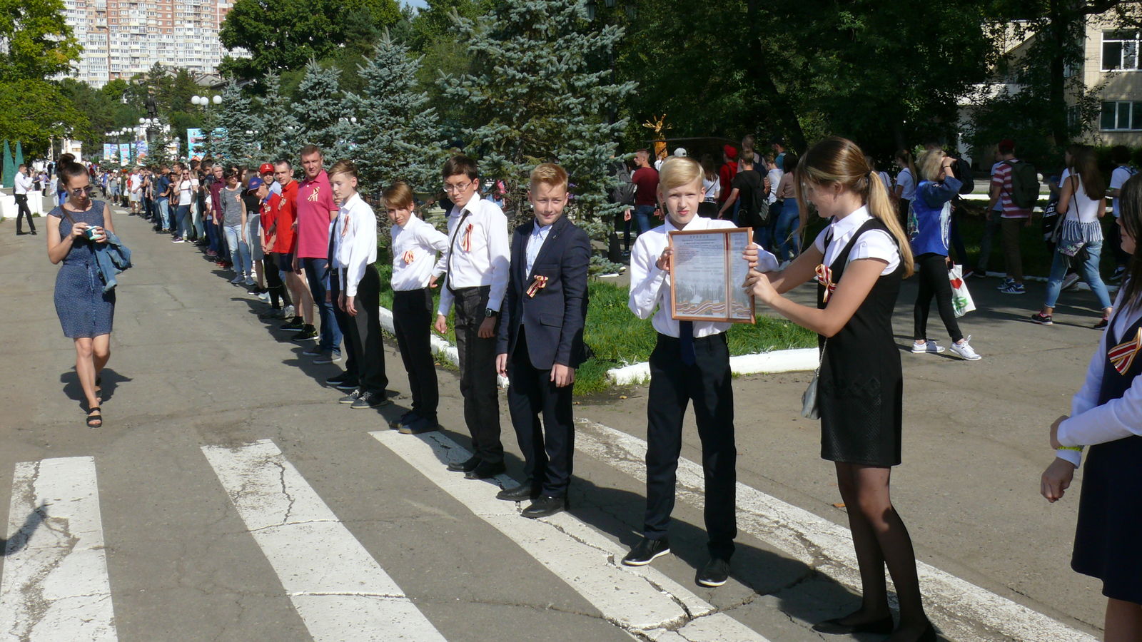 Организаторы планировали, что в акции примут участие 1945 человек, что будет символизировать год окончания войны. Однако в патриотическом мероприятии оказались задействованы более 2, 5 тыс. человек, передававшие из рук в руки друг другу текст приказа Верховного главнокомандующего И. В. Сталина №373, который начинался словами: «2 сентября 1945 года представителями Японии подписан акт о безоговорочной капитуляции японских вооруженных сил. Война советского народа совместно с нашими союзниками против последнего агрессора – японского империализма – победоносно завершена, Япония разгромлена и капитулировала…»