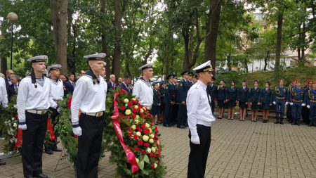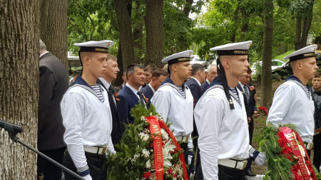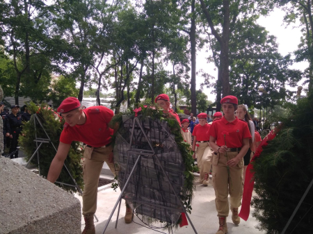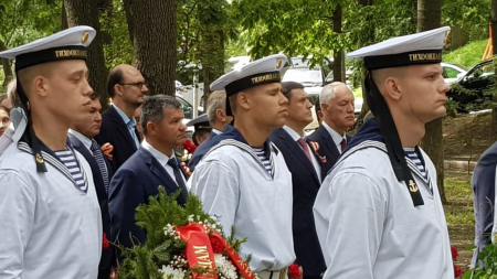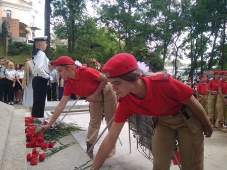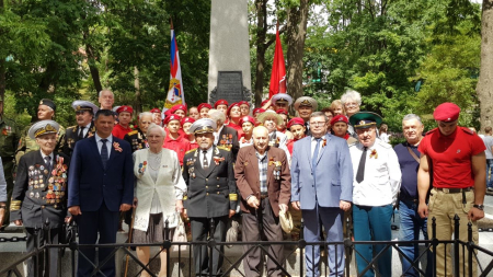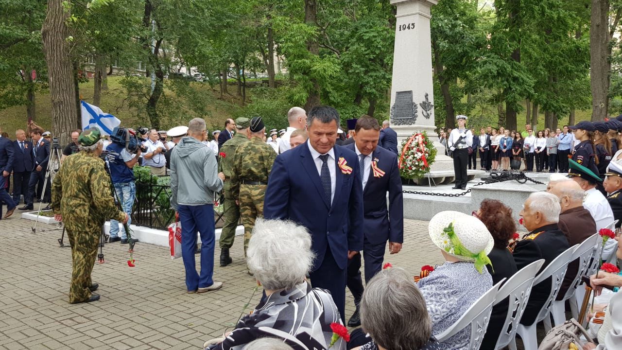 Глава Приморья Андрей Тарасенко вместе с ветеранами, представителями Тихоокеанского флота возложил цветы и венки в Гайдамакском сквере возле братской могилы героев-тихоокеанцев, где собрались юнармейцы, школьники, студенты, курсанты, жители и гости края.