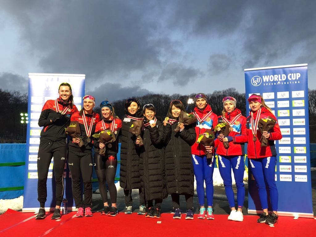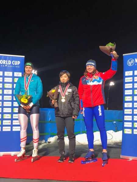 Бронзовый призер зимних Олимпийских игр 2018 года Наталья Воронина и чемпионка мира среди юниоров в многоборье Елизавета Казелина завоевали «бронзу» в командной гонке (Воронина, Казелина и Елена Лаленкова) в первый соревновательный день второго этапа Кубка мира в японском Томакомае. Россиянки пробежали командную гонку за 3 минуты 06,690 секунды. Первыми стали японки - 3.02,370, вторыми - канадки - 3.05,950.