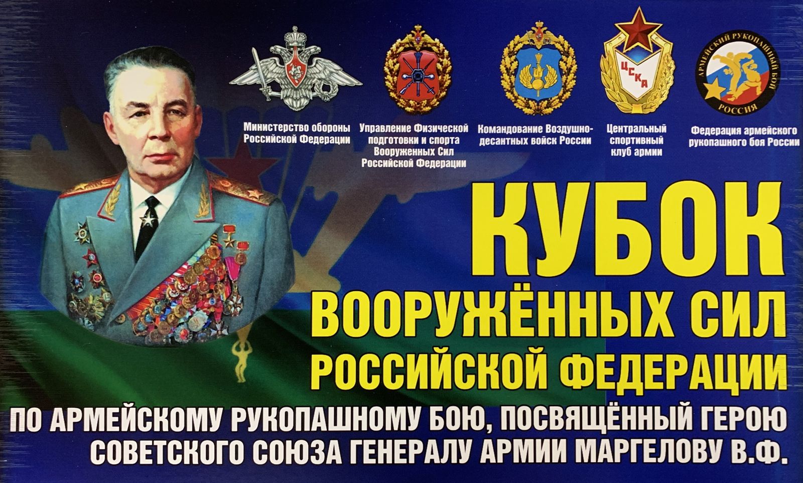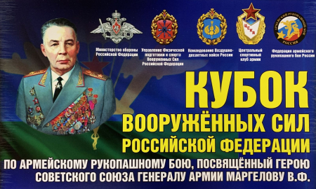 Кубок Вооруженных Сил РФ по армейскому рукопашному бою имени героя Советского Союза, генерала армии В.Ф. Маргелова – ежегодное соревнование, которое выявляет сильнейших военнослужащих-спортсменов в соответствующих весовых категориях. В 2018 году Дворец спортивных единоборств ЦСКА открывает свои двери для проведения юбилейного соревнования.
