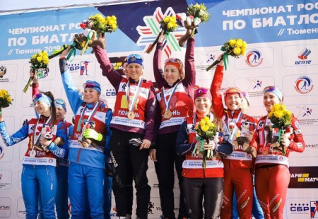 Золотые медали в эстафете завоевали биатлонистки из Ханты-Мансийского автономного округа (Елизавета Каплина, Анастасия Морозова, Кристина Резцова и Екатерина Мошкова), которые показали результат 1 час 17 минут 20,2 секунды (один штрафной круг).