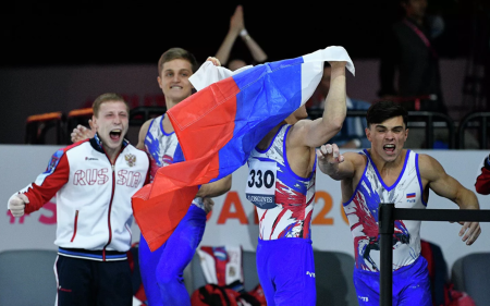 Мужская сборная России по спортивной гимнастике, в составе которой выступили серебряный и бронзовый призёр Олимпийских игр, многократный призер чемпионатов мира, победитель и призер чемпионатов Европы, Европейских игр и Универсиады Давид Белявский, серебряный призер Олимпийских игр, двукратный серебряный и бронзовый призёр Универсиады Иван Стретович, Никита Нагорный, Артур Далалоян, Владислав Поляшов и Денис Аблязин, первенствовала на чемпионате мира в Штутгарте в командном многоборье. По сумме шести упражнений россияне набрали 261,726 балла.