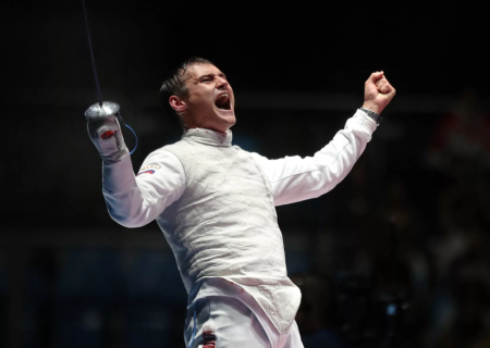 В первом финале дня на фехтовальной дорожке в Ухани свои рапиры скрестили мужские команды России и Франции.