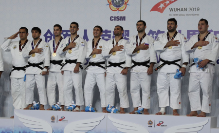 Мужская сборная Вооруженных Сил Российской Федерации, в составе которой выступили рядовой спортивной роты ЦСКА, г. Санкт-Петербург Обид Джебов, прапорщик Ислам Хаметов (оба – до 66 кг), рядовой спортивной роты ЦСКА, г. Санкт-Петербург Армен Агаян (до 73 кг), лейтенант Аслан Лаппинагов, старший лейтенант Алан Хубецов (оба – до 81 кг), прапорщик Михаил Игольников (до 90 кг), прапорщик Инал Тасоев и прапорщик Антон Брачев (оба – 90+ кг), одержала победу в командных соревнованиях на VII Всемирных военных играх.