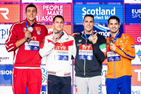 Бронзовый призёр Олимпийских игр, многократный призёр чемпионатов мира, многократный победитель и призёр чемпионатов мира на короткой воде, двукратный чемпион Европы, многократный победитель и призёр чемпионатов Европы на короткой воде, четырёхкратный победитель Универсиад Владимир Морозов стал первым на чемпионате Европы на короткой воде на дистанции 50 метров брассом, установив рекорд Европы. Его результат 25,51 секунды. Вторым стал турок Эмре Сакчи - 25,82 секунды. Бронзовые медали выиграли голландец Арно Камминга и итальянец Фабио Скоццоли, проплывшие дистанцию за 25,84 секунды.
