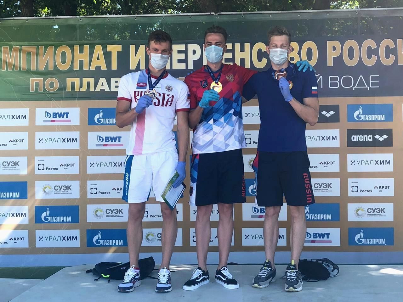 Вторым с результатом 56 минут 52,2 секунды финишировал серебряный призер чемпионатов мира и Европы рядовой спортивной роты ЦСКА, г. Самара Кирилл Беляев. На третью ступень пьедестала почета, преодолев пятикилометровку за 56 минут 59,1 секунды, поднялся серебряный призер первых Всемирных пляжных игр, серебряный призер этапа Кубка Европы, победитель Финала Кубка России Денис Адеев.