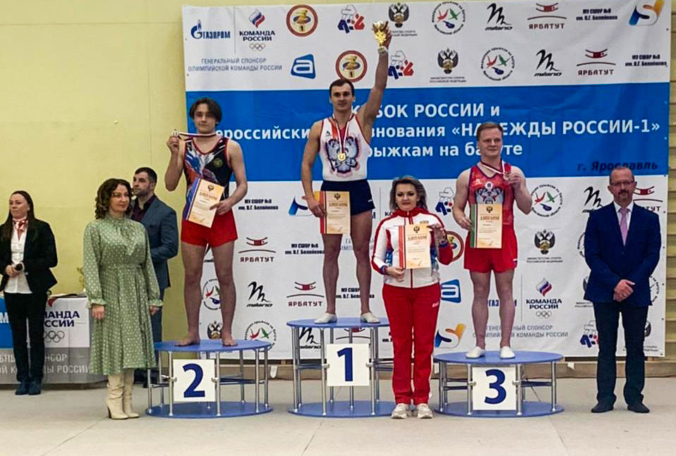 В прыжках на акробатической дорожке на старт соревнований вышли 37 спортсменов. Мастер спорта международного класса по прыжкам на акробатической дорожке, победитель Первенства мира и Европы, двукратный чемпион России, обладатель Кубка России 2020, рядовой спортивной роты ЦСКА, г. Севастополь Александр Лисицын без ошибок прошел все стадии соревнований и стал обладателем Кубка России 2021 года. Вторым стал Алексей Светлишников, третьим Никита Ленин.
