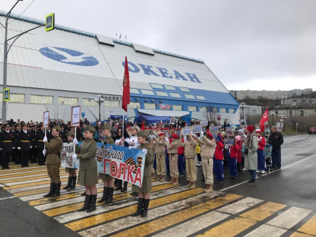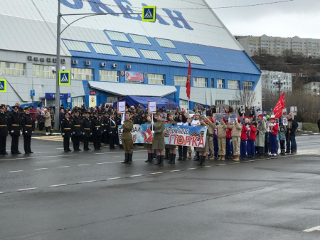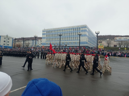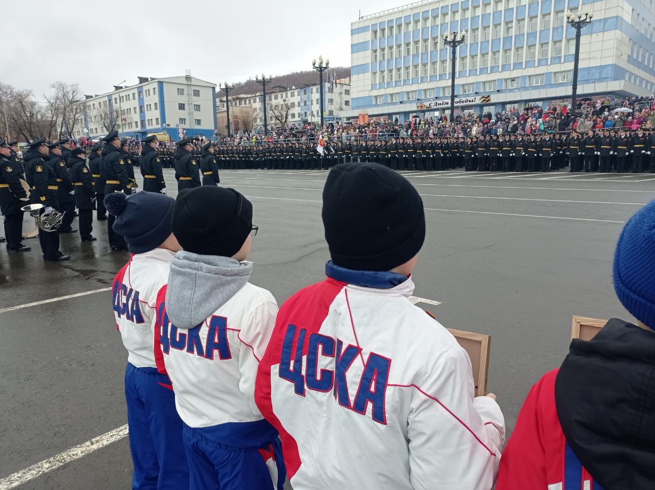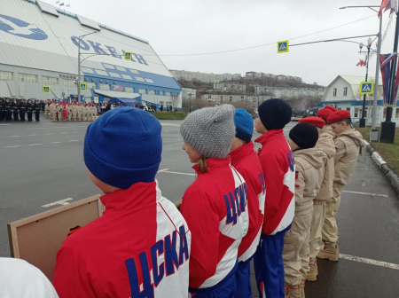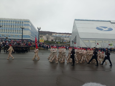 Помимо войск гарнизона, в параде приняли участие и юнармейцы города, в том числе воспитанники СОК (г. Вилючинск) филиала ЦСКА/ Хабаровск.