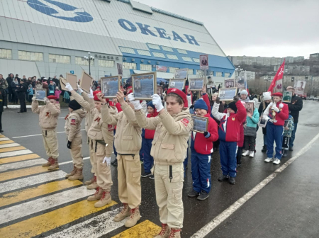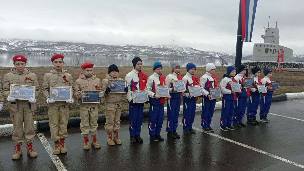 Юным армейским спортсменам была поручена ответственная миссия – пронести фотопортреты погибших в годы войны моряков-подводников. Портреты загодя распечатали и оформили в рамочки под стеклом.