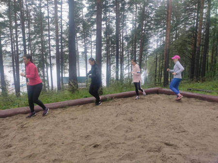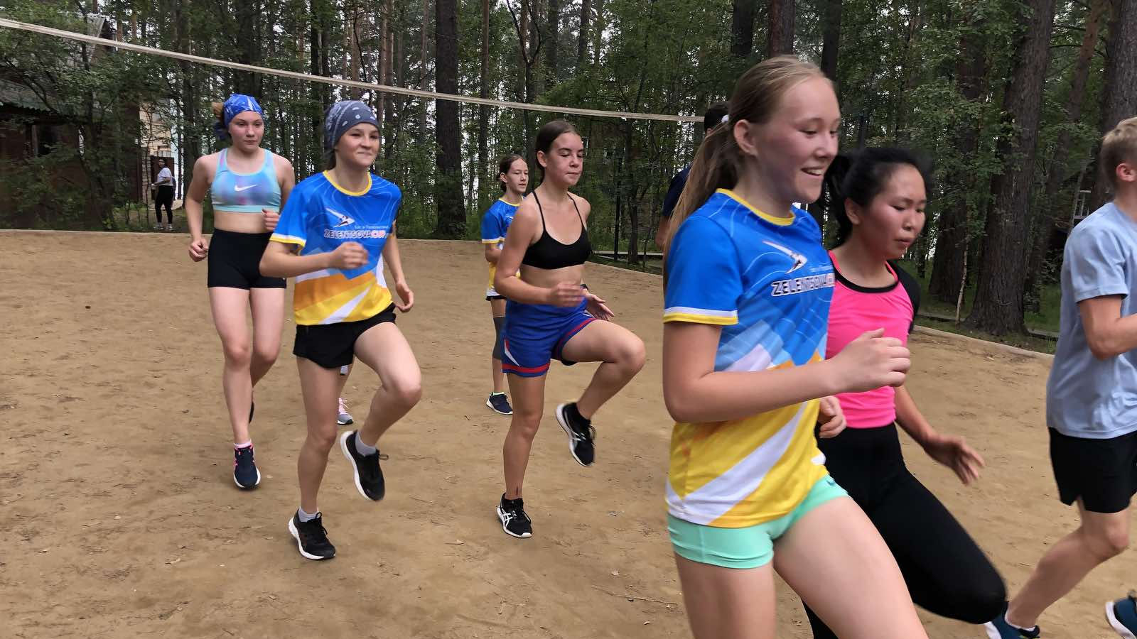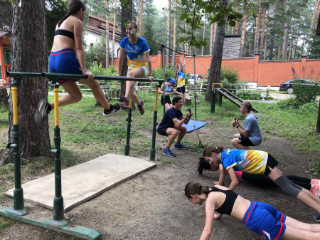 Семь девушек и двое юношей под руководством тренера Светланы Сергеевны Немыновой и тренировались, и активно отдыхали.