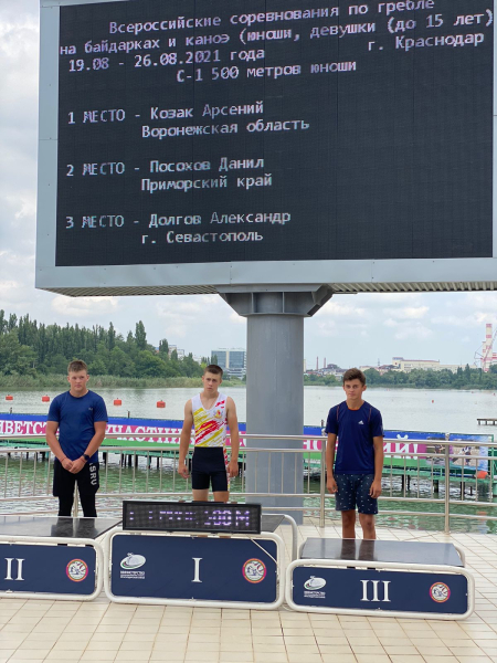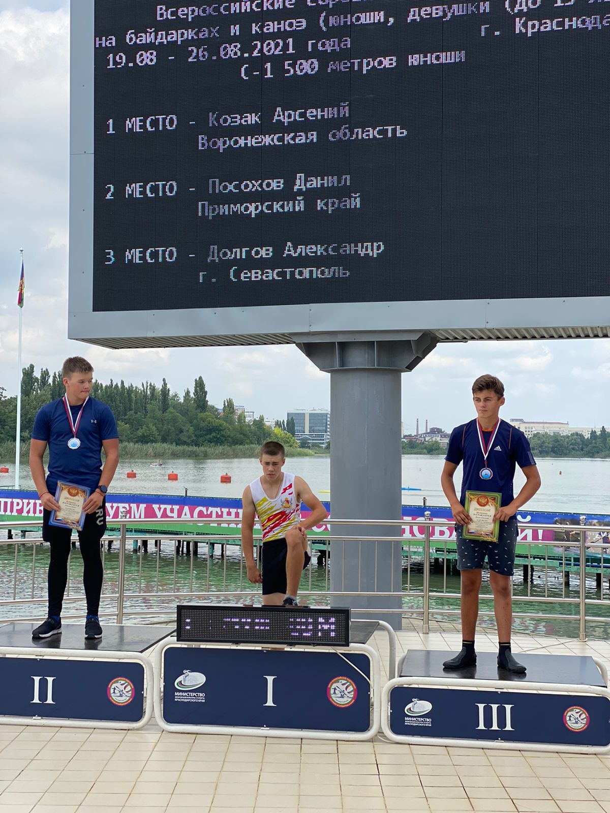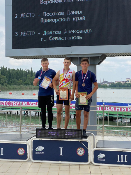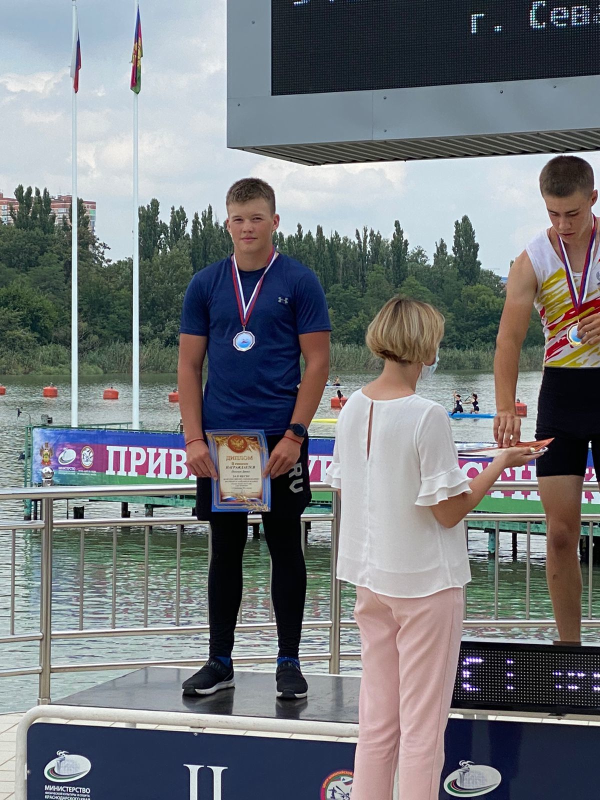 22 августа, выступая на 500-метровой дистанции, первым к финишу пришел Арсений Козак (Воронежская область), опередив Данила на две секунды. Зато бронзового призера - Алек5сандра Долгова (Севастополь) Данил опередил почти на 4 секунды.