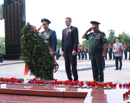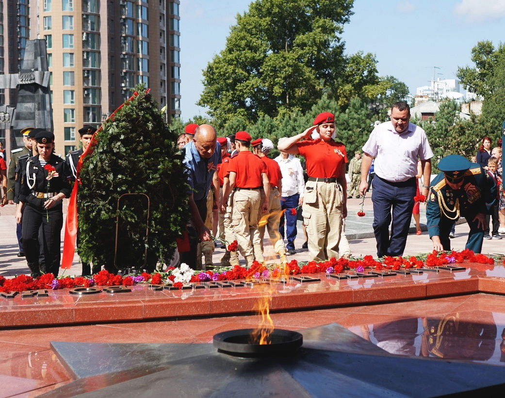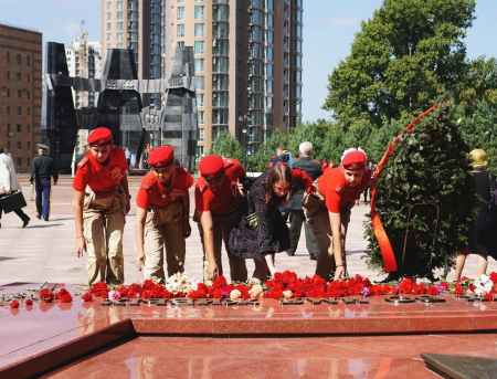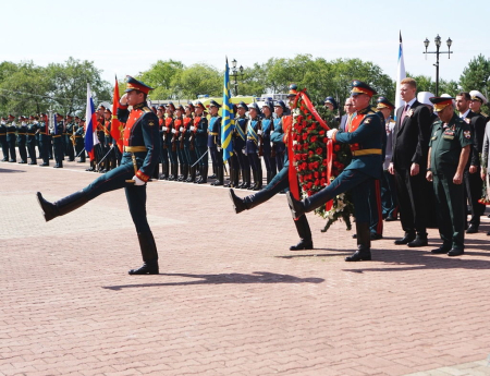 В честь этого события юнармейцы краевой столицы, в том числе трое воспитанников СШ (ОРК) филиала ЦСКА/Хабаровск, приняли участие в возложение венков и цветов к мемориалу «Вечный огонь» на площади Славы и к памятнику маршалу Советского Союза А.М. Василевскому, который в июне 1945 года был назначен главнокомандующим советскими войсками на Дальнем Востоке и внес огромный вклад в успешное проведение стратегической операции по разгрому японской Квантунской армии.