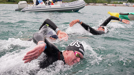 В заплыве на 5 км Абросимов также оказался на первом месте. Спортсмен преодолел дистанцию за 55 минут и 38,8 секунды. Вторым на финише с отставанием в 1,8 секунды был Александр Степанов, третьим – Кирилл Беляев - плюс 8,9 секунды.