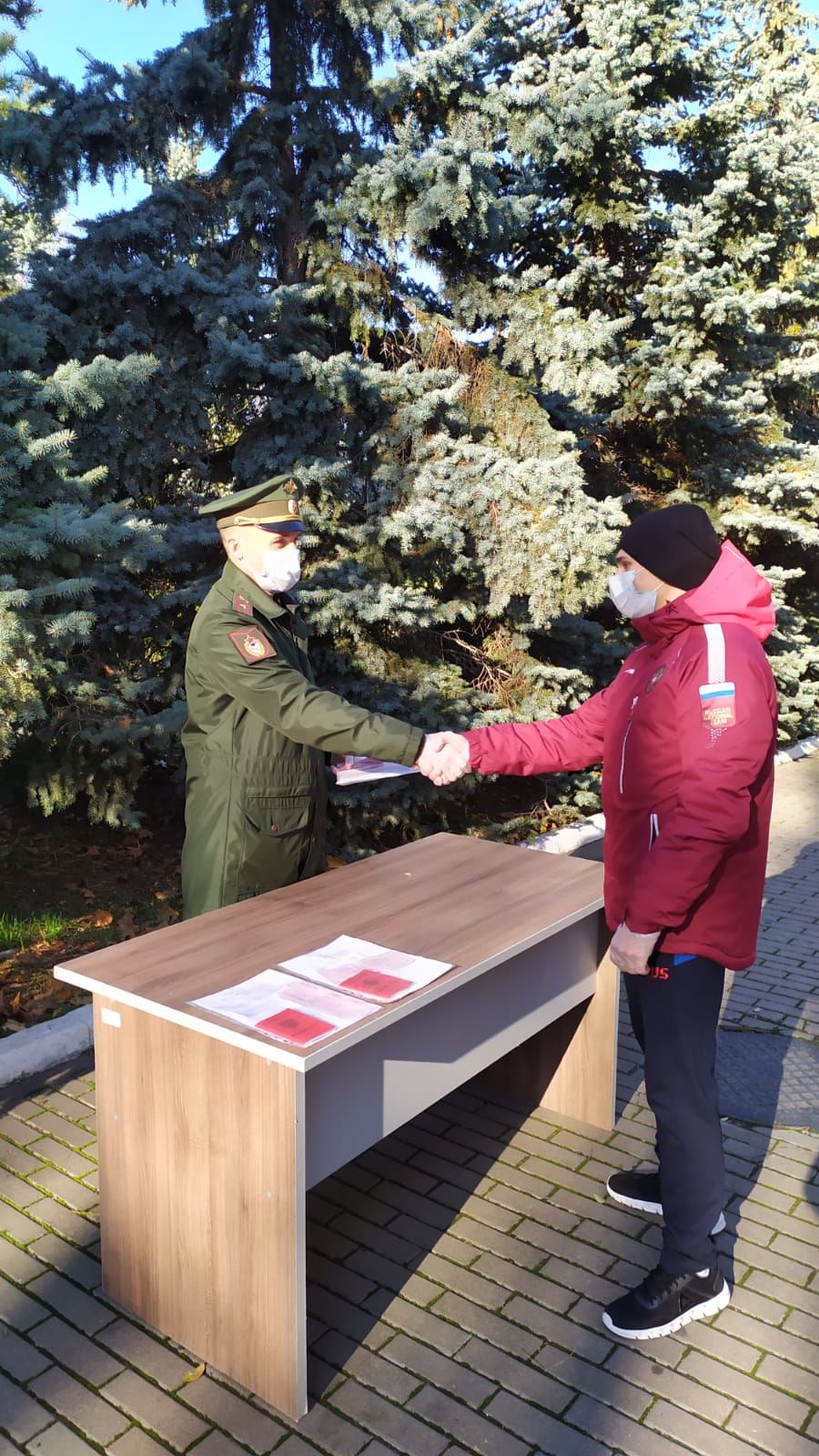«Сегодня те военнослужащие, которые призывались год назад, увольняются в запас. В нашем частном случае это 38 спортсменов. Все они достойно служили, защищали флаги ЦСКА и Вооруженных сил Российской Федерации. Мероприятие проходит с поправкой на коронавирусные ограничения на территории филиала ЦСКА в Севастополе», – сказал командир спортивной роты майор Пётр Недомерков, который и вручал военные билеты.