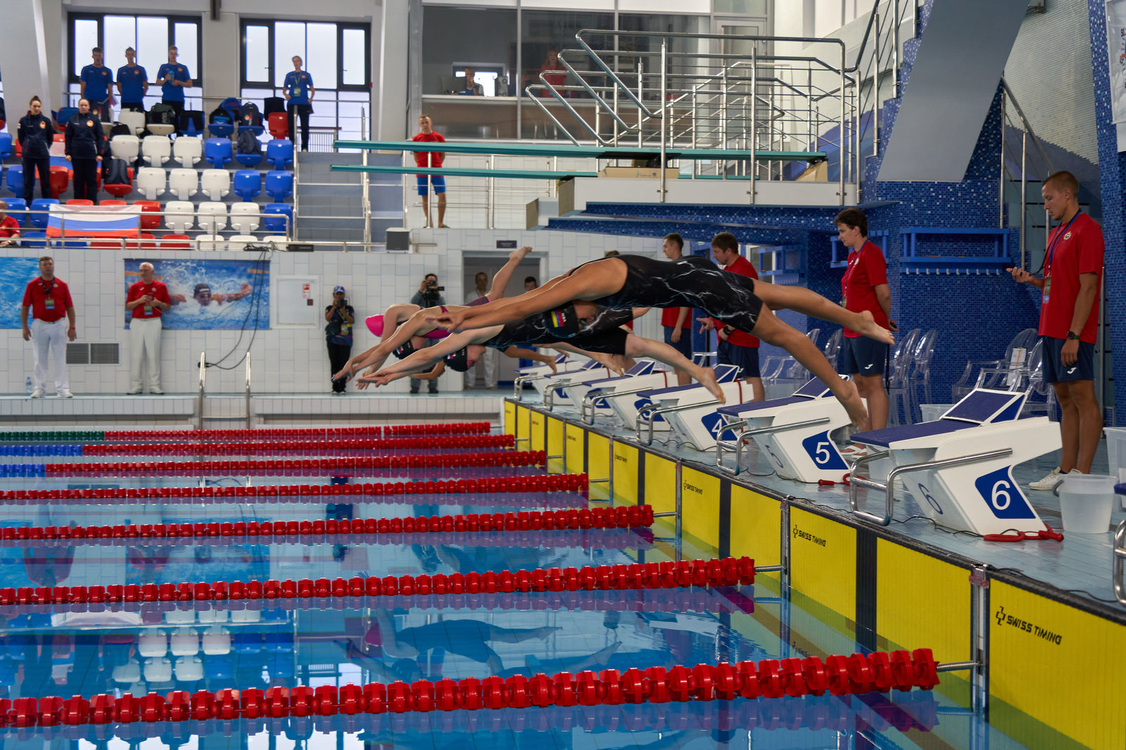 Интересная и упорная борьба развернулась на дистанции 100 м вольным стилем среди юношей, где иранский спортсмен Хади Джалали буквально на долю секунды уступил победителю - российскому курсанту Дмитрию Мысину. А на дистанции 200 м комплексным плаванием среди девушек спортсменка из команды Беларуси Елизавета Запольская заняла первое место.
