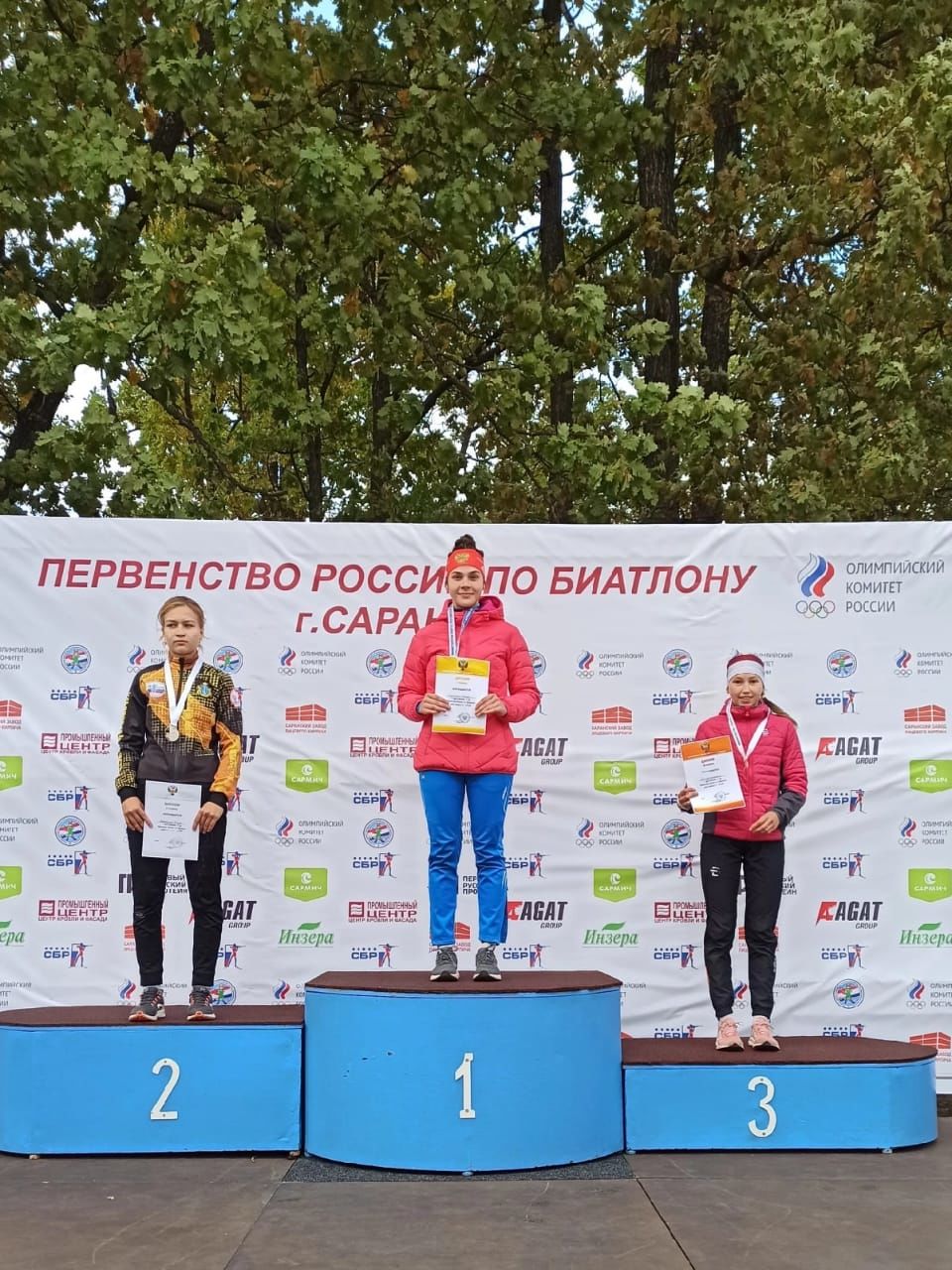 Армейская спортсменка завершила гонку с третьим результатом 15 минут 9,5 секунды, уступив 15,2 секунды сопернице из Ульяновска Дарье Катербузовой.