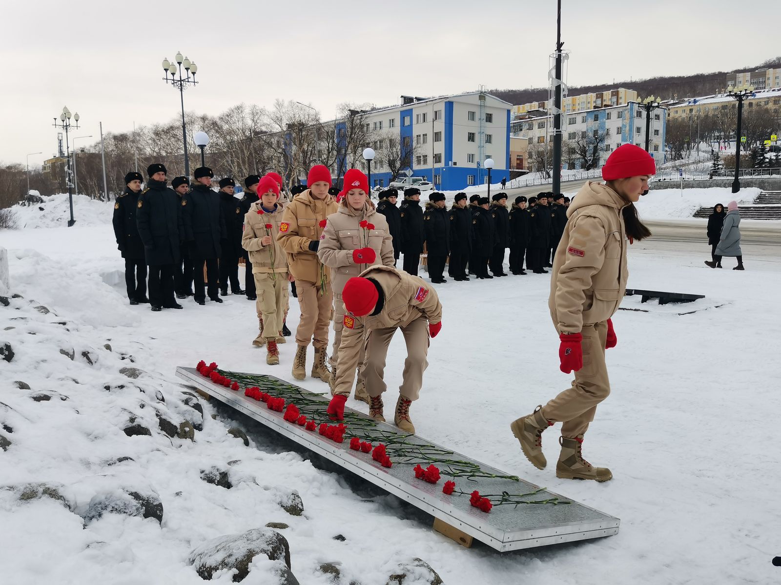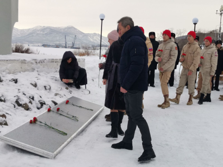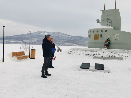 Собравшиеся почтили память павших героев Отечества минутой молчания и возложили цветы к мемориалу памяти героев-подводников.