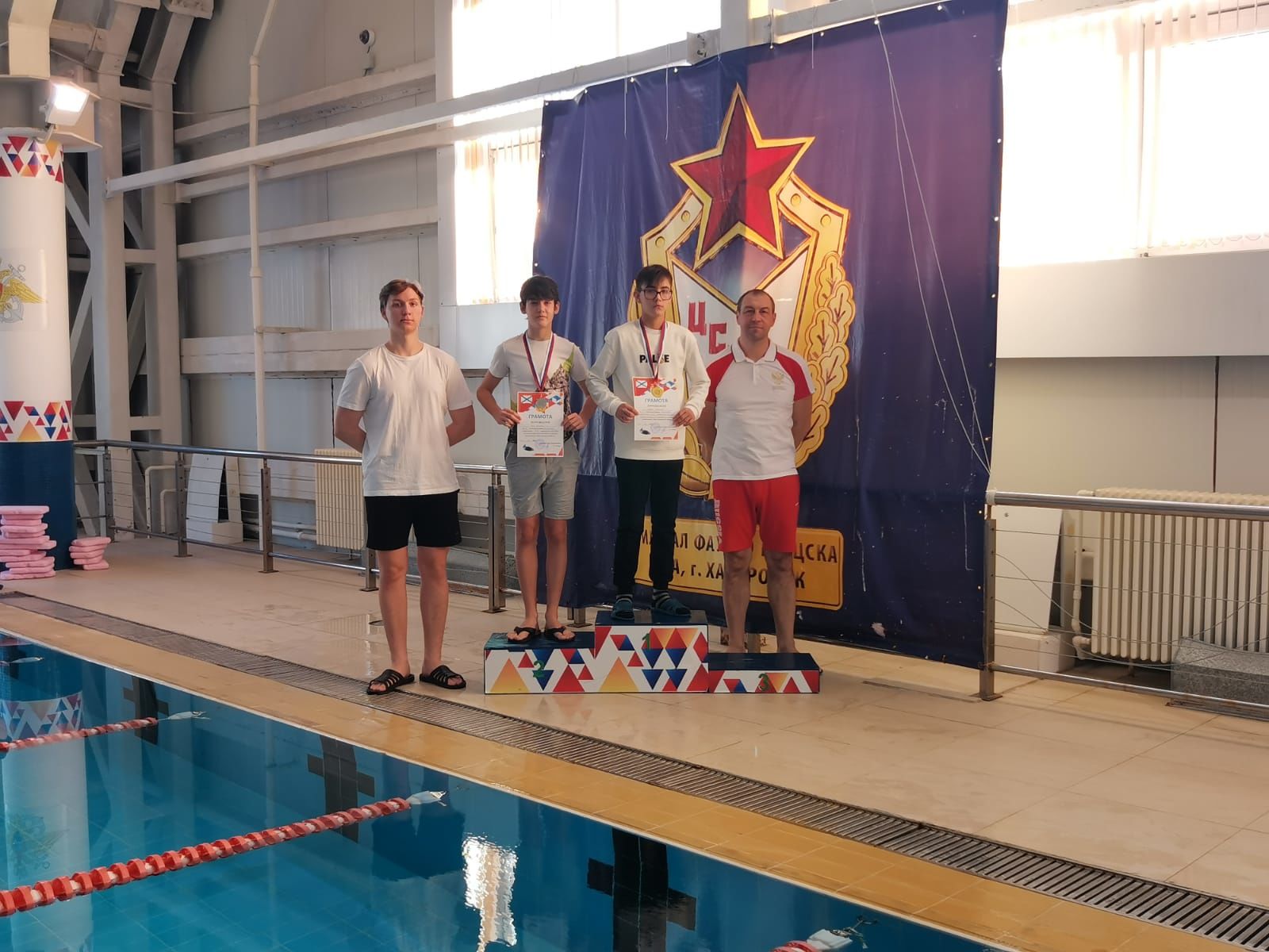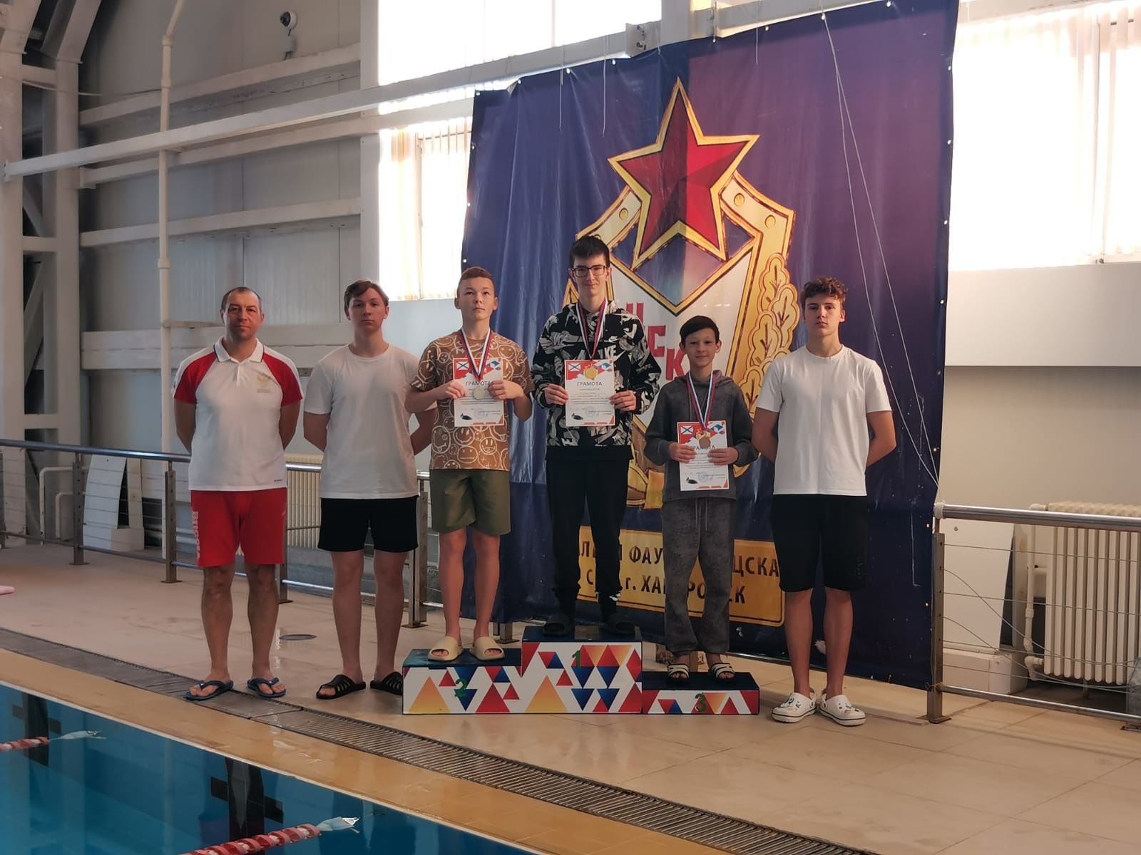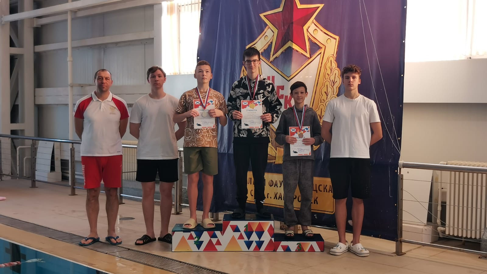 Победителями соревнований среди воспитанников Вилючинского отделения СШ (ОРК) стали: на дистанции 100 м на спине - Федор Гульбин, Илья Мороз; на дистанции 100 м брассом - Кирилл Тарасенко, Сергей Мордовкин, Никита Федотов, Богдан Кузьмин, Вероника Грабовская и Яна Киселева; на дистанции 100 м вольным стилем - София Полякова, Яна Киселева, Владимир Стаценко и Максим Петров.