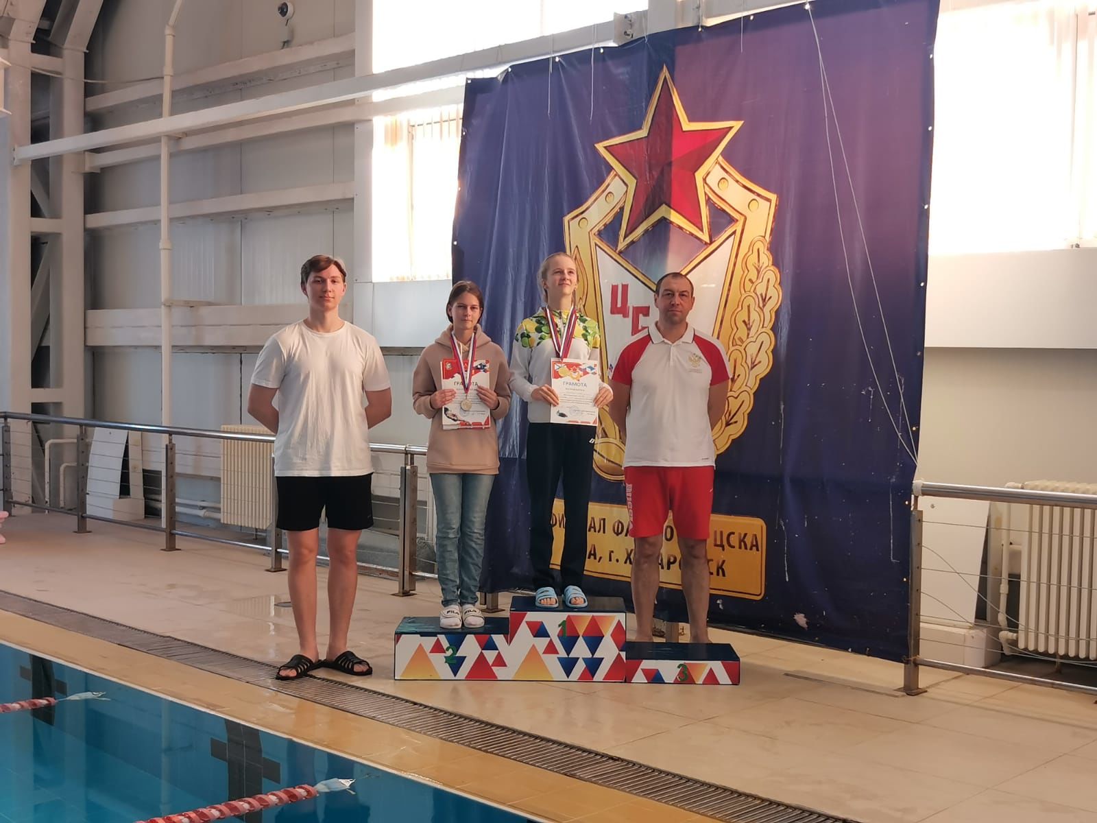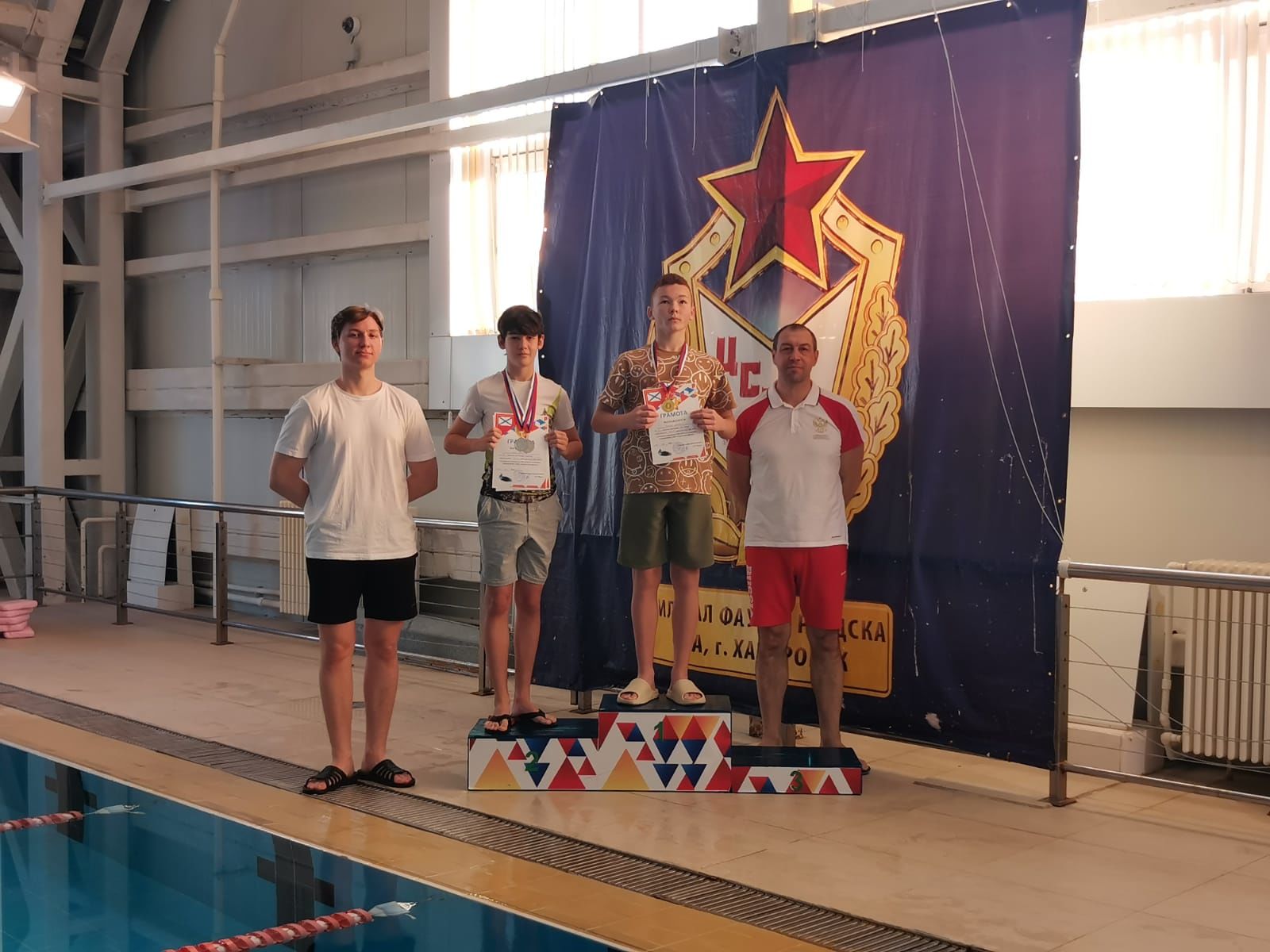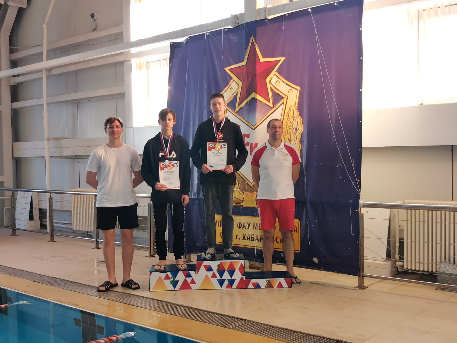 Победителями соревнований среди воспитанников Вилючинского отделения СШ (ОРК) стали: на дистанции 100 м на спине - Федор Гульбин, Илья Мороз; на дистанции 100 м брассом - Кирилл Тарасенко, Сергей Мордовкин, Никита Федотов, Богдан Кузьмин, Вероника Грабовская и Яна Киселева; на дистанции 100 м вольным стилем - София Полякова, Яна Киселева, Владимир Стаценко и Максим Петров.