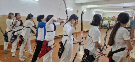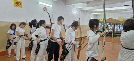 Тренируют армейских лучников Ц.Ц. Анандаев, С.Б. Жигжитова и Д.Ц. Жигжитова.