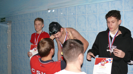 В заплывах на 50 м на спине золотые медали в своих возрастных группах завоевали Анастасия Шопина, Анастасия Журавлева, Гордей Ухожанский и Виктор Паленый.