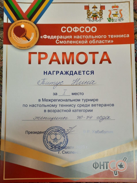 По итогам соревнований Нина Федоровна заняла в своей возрастной категории 1 место. В упорных поединках она обыграла Татьяну Николаевну Неразик (г. Минск), Веру Степановну Плетневу (Московская область) и Елену Олеговну Баронову (г. Москва).