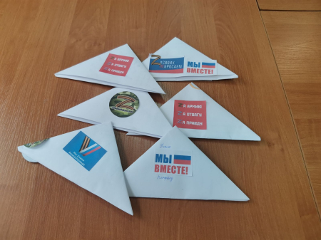 Ребята написали письма ветеранам Великой Отечественной войны, ветеранам боевых действий, а также участникам СВО, в которых пожелали защитникам Родины разных поколений крепкого здоровья и долгих лет жизни, а участникам СВО также доблестно выполнить свой воинский долг и вернуться домой с победой.