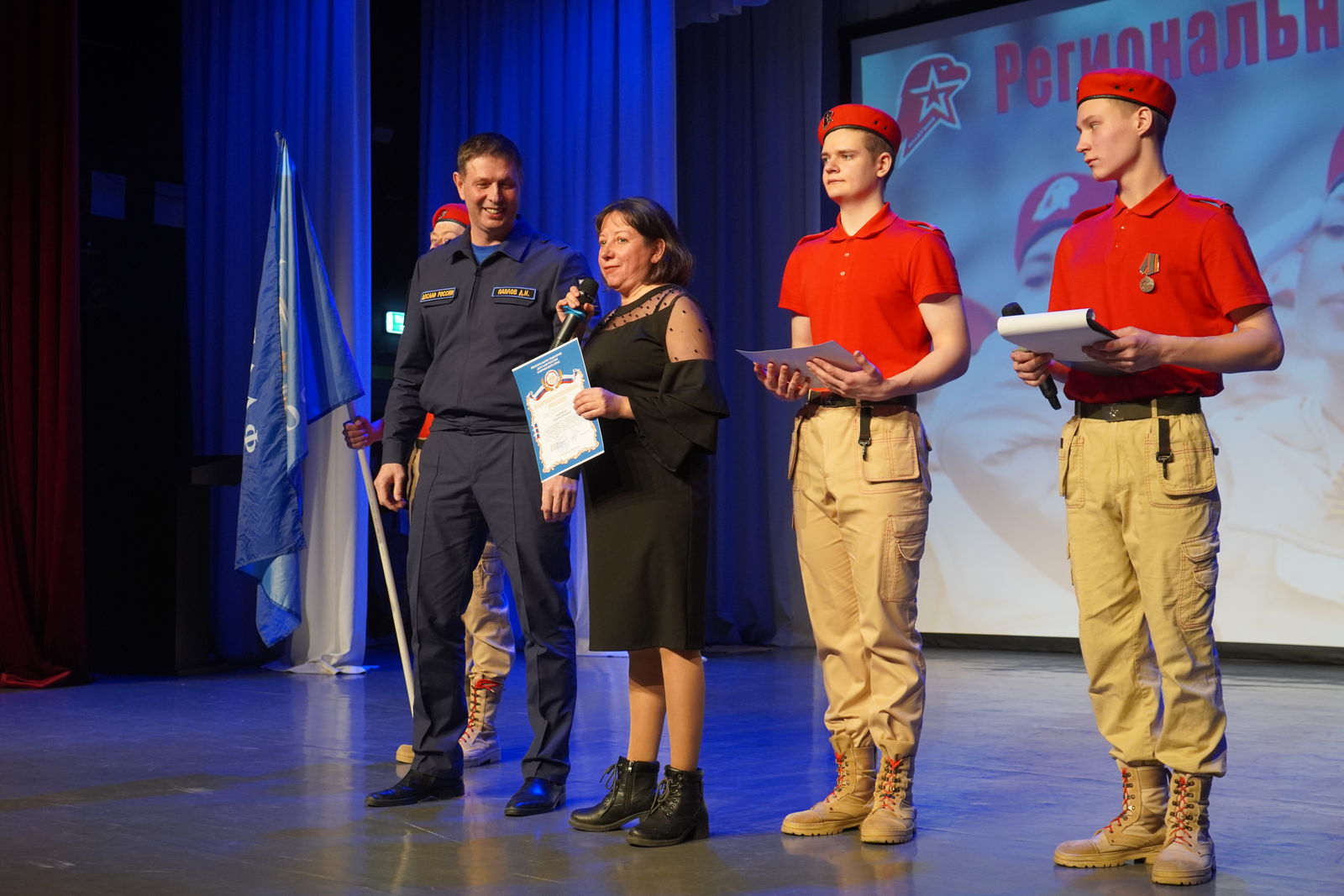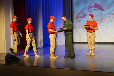 Наиболее отличившихся за отчетный период юнармейцев, занимающих активную гражданскую позицию, начальник штаба регионального отделения Всероссийского детско-юношеского военно-патриотического общественного движения «Юнармия» Константин Николаевич Третьяков наградил грамотами.