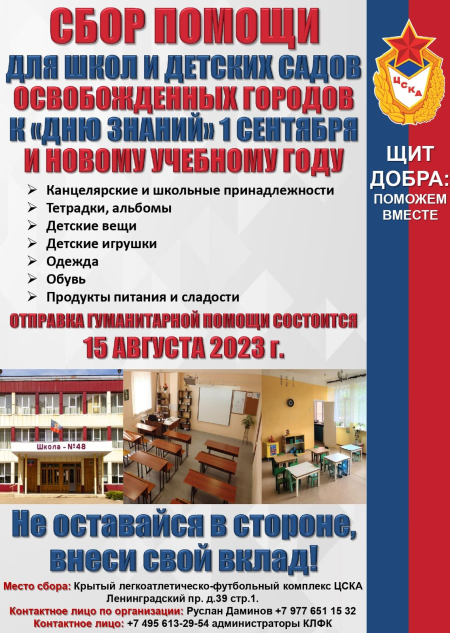 В Москве постоянный пункт сбора гуманитарной помощи открыт на территории крытого легкоатлетическо-футбольного комплекса ЦСКА в Москве (Ленинградский просп., 39, стр. 1). Аналогичные пункты работают и в регионах.