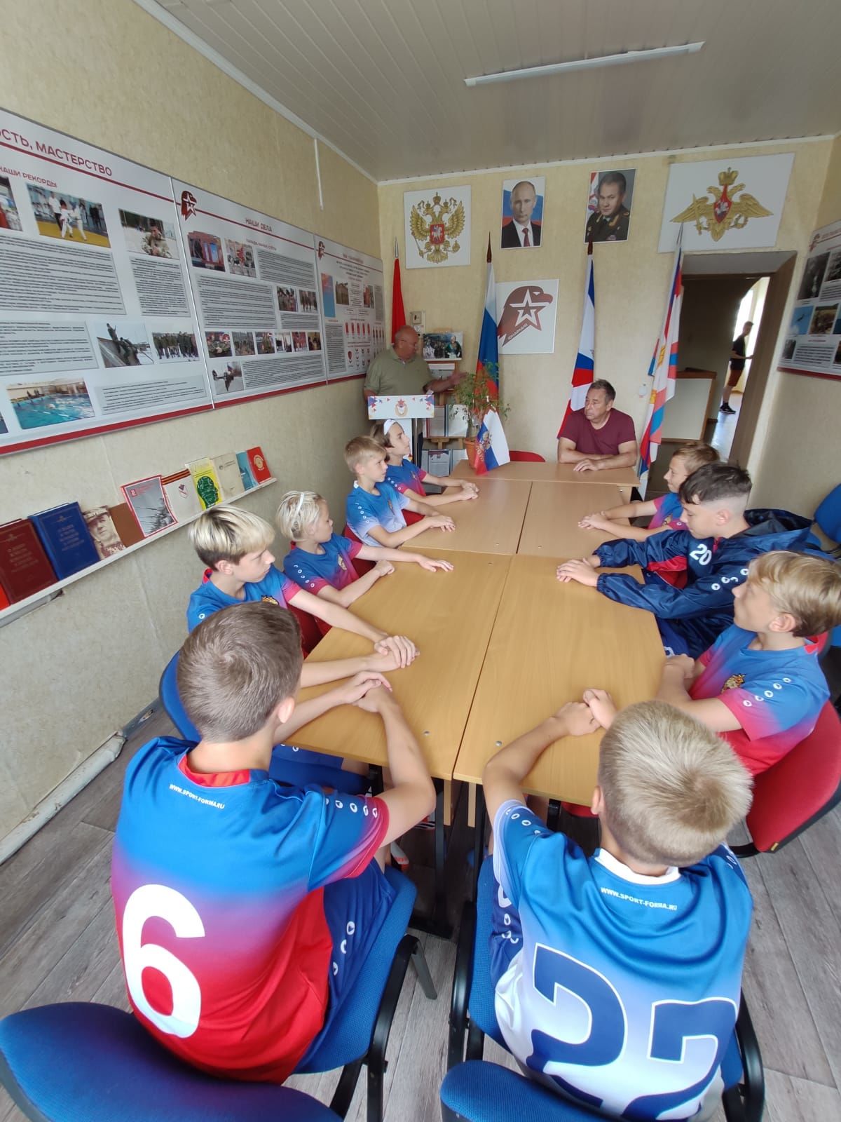 Воспитанники отделения футбола спортшколы филиала собрались в комнате «Юнармии». Тренер Сергей Пучков рассказал юным футболистам об истории флага РФ, символике и значении всех его элементов. Отдельно он отметил значимость этого символа нашей государственности для каждого россиянина и для каждого спортсмена, тем более представляющего ЦСКА.