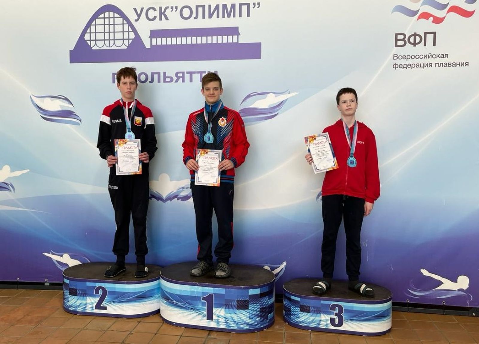 Александр Матей, плывя брассом, завоевал две золотые медали на дистанциях 50 и 100 метров. Семён Дугушов, проплыв баттерфляем, завоевал золото на дистанции 50 метров и серебро на 100 метровой дистанции. В заплыве на 800 метров вольным стилем Борислав Филимонов стал вторым, а Михаил Илларионов третьим.