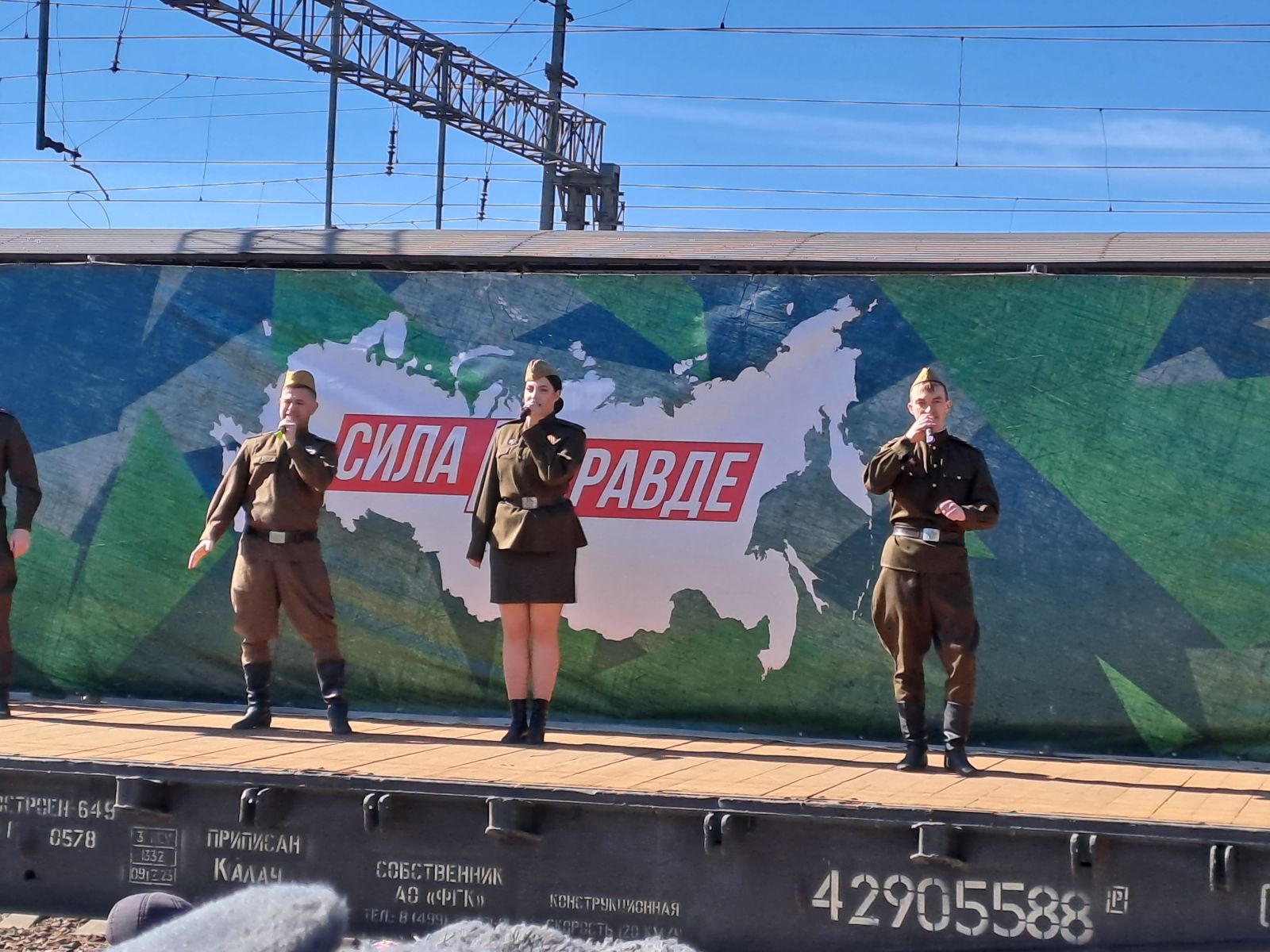 На перроне прошла церемония принятия в ряды юнармейцев читинских школьников. Затем участники митинга возложили цветы к стеле мемориала героям специальной военной операции. И поезд снова отправился в путь. Уже завтра его ждут в Улан-Удэ.