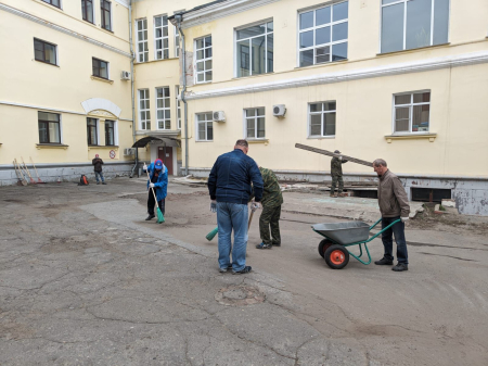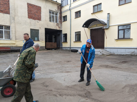 Накануне руководством филиала были поставлены задачи подразделениям, поэтому каждый сотрудник знал свой участок работы. Женщины трудились внутри здания, мужчины – снаружи. В ходе субботника были вымыты окна и наведен порядок в кабинетах, в фойе и на лестницах, а также на прилегающей территории во внутреннем дворе и со стороны фасада здания спорткомплекса.