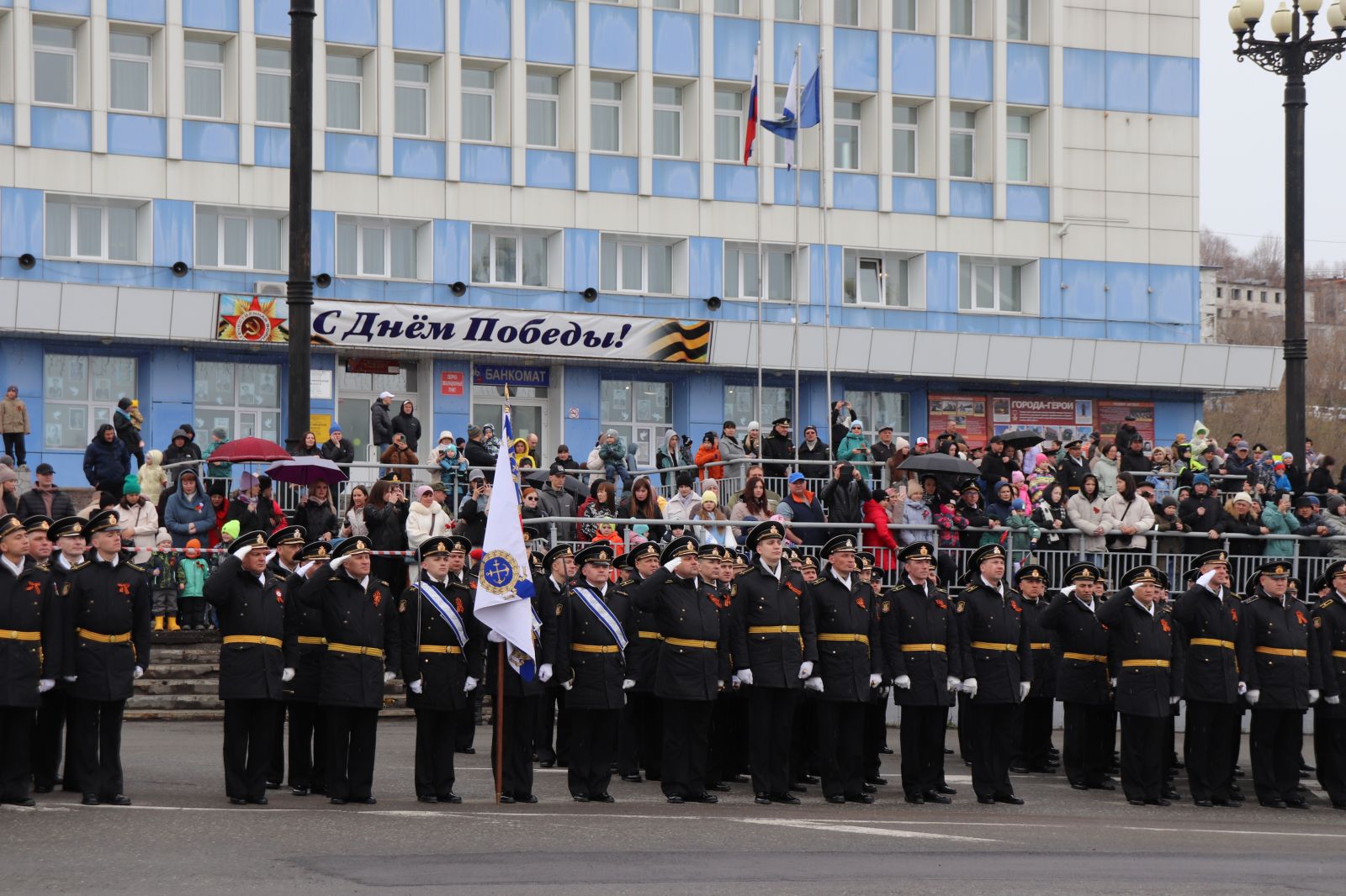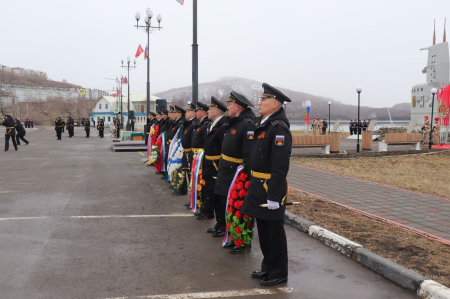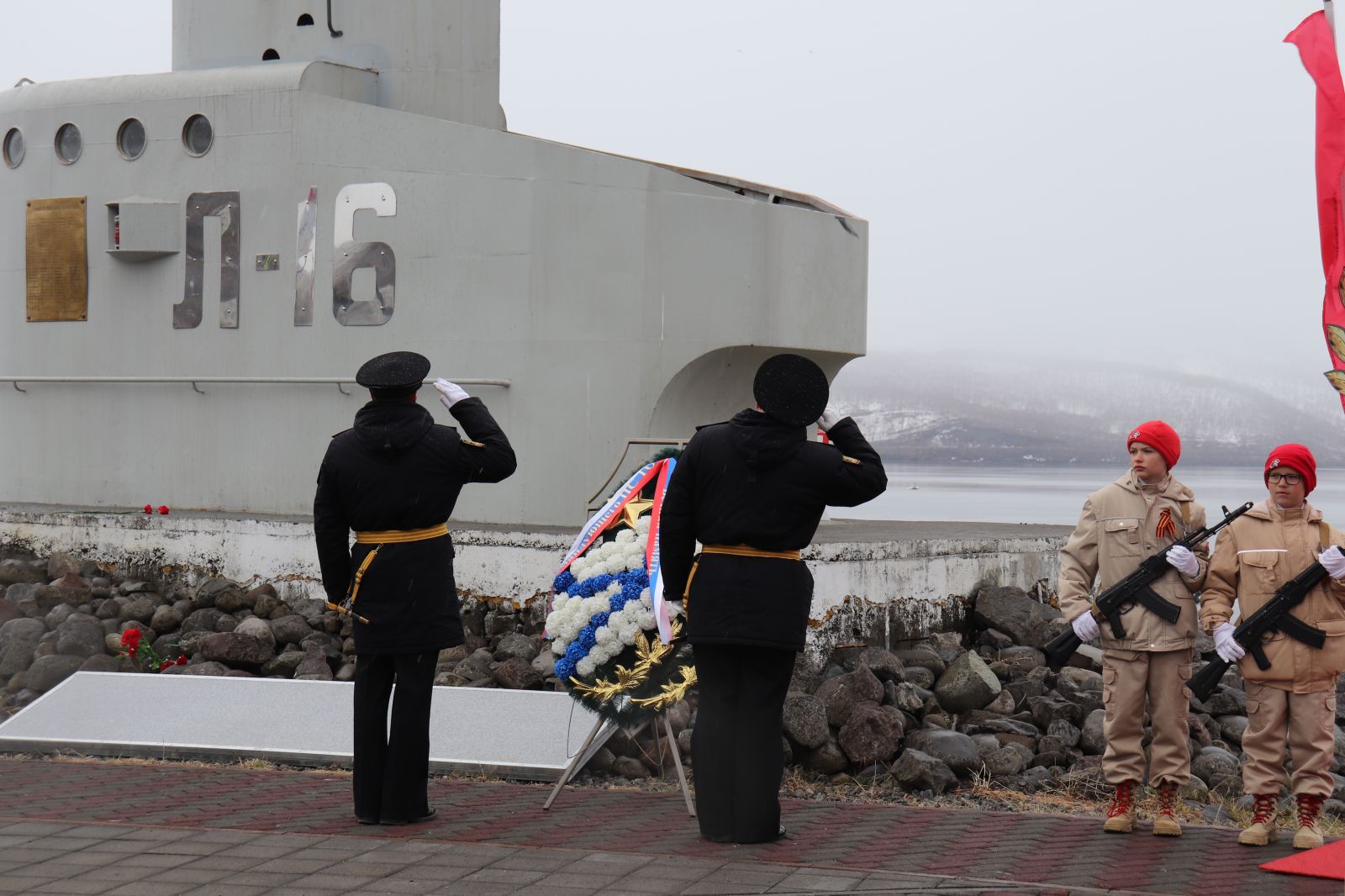 После прохождения торжественным маршем военнослужащих состоялось возложение венков и цветов к мемориалу, установленному в память экипажа подводной лодки «Л-16», погибшего в годы Великой Отечественной войны.