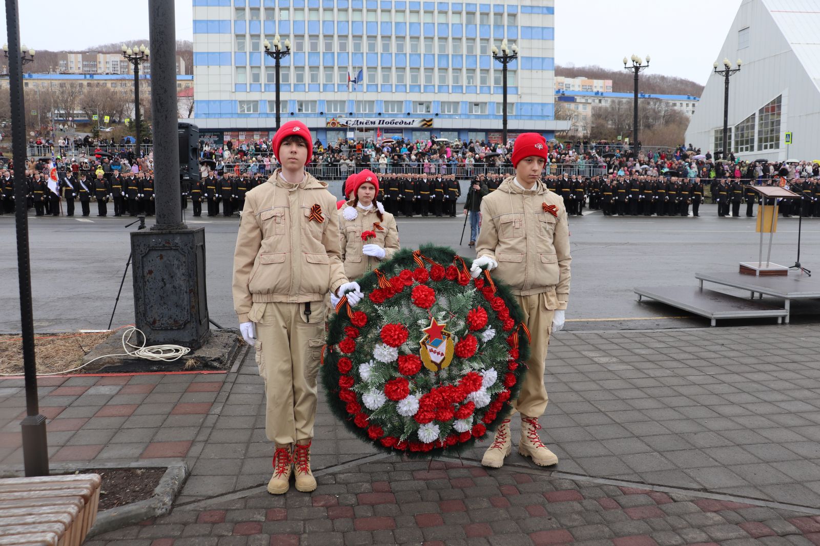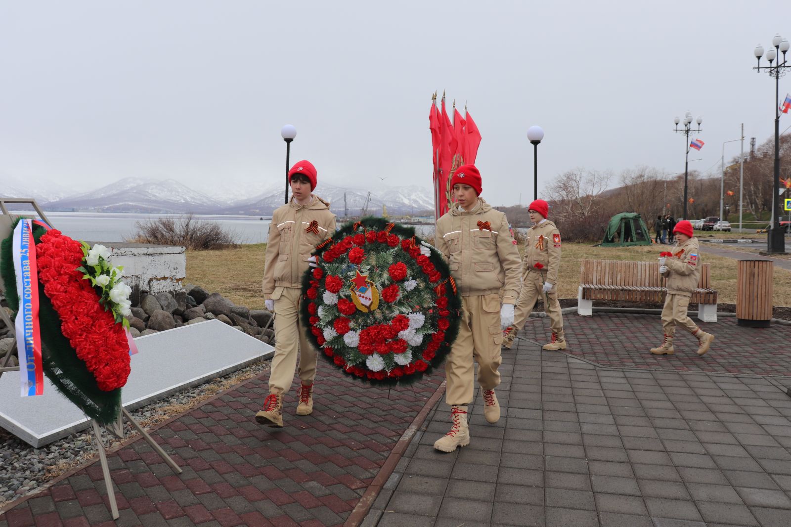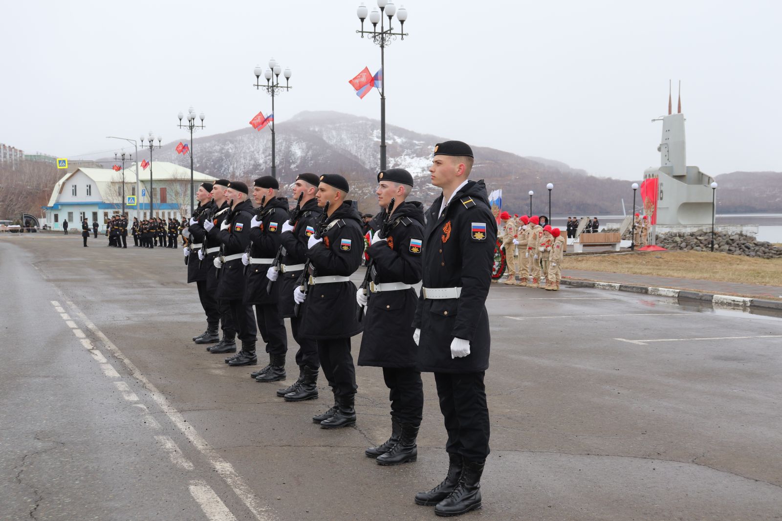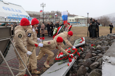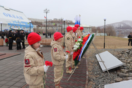 Почтить память погибших в годы войны пришли представители ПС ТОФ, администрации ВГО, жители Вилючинска, а также юнармейцы Спортивно-оздоровительного комплекса (г. Вилючинск) Хабаровского филиала ЦСКА Макар Ковтун, Эльдар Степин, Вячеслав Ломако, Марк Щербина, Анна Откидычева и Дарья Соловьева.