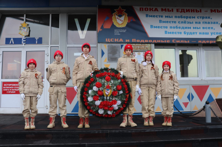 Юнармейцы приняли участие в торжественном возложении цветов и венков к мемориалу.