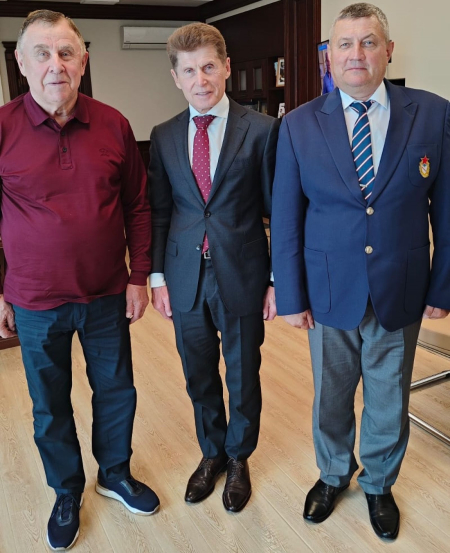 21 мая состоялась рабочая встреча губернатора Приморского края Олега Николаевича Кожемяко, министра спорта Приморского края Жана Анзорьевича Кузнецова с советником командования ФАУ МО РФ ЦСКА, председателем совета ветеранов ЦСКА Юрием Александровичем Мироновым и начальником Спортивного центра морской и физической подготовки (г. Владивосток) Хабаровского филиала ЦСКА Олегом Евгеньевичем Докучаевым по вопросам развития материальной базы армейского Клуба в городе Владивостоке.